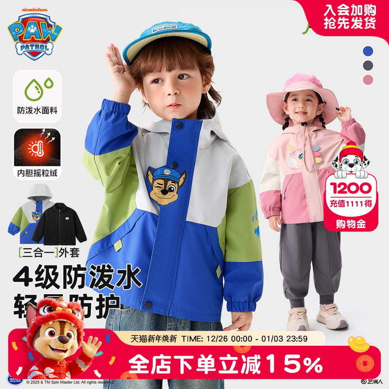 汪汪队男童冲锋衣类型外套春秋儿童外套女童宝宝户外服秋冬三合一