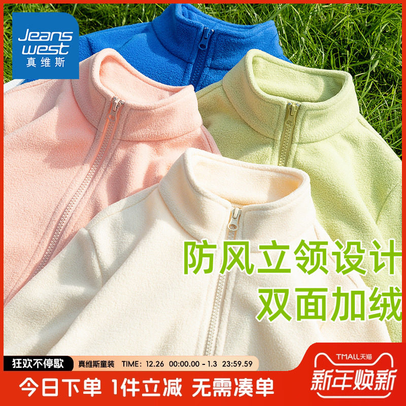 真维斯童装冲锋衣内胆儿童摇粒绒外套女童双面抓绒衣加绒男童秋装