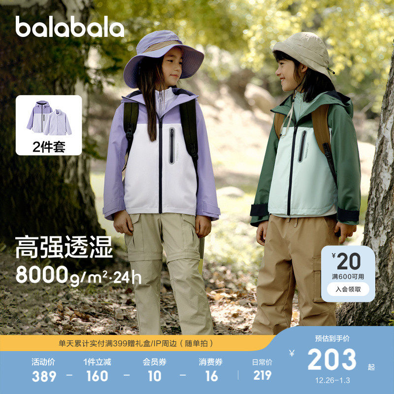 巴拉巴拉童装儿童冲锋衣男童女童三合一三防外套两件套中童春秋潮