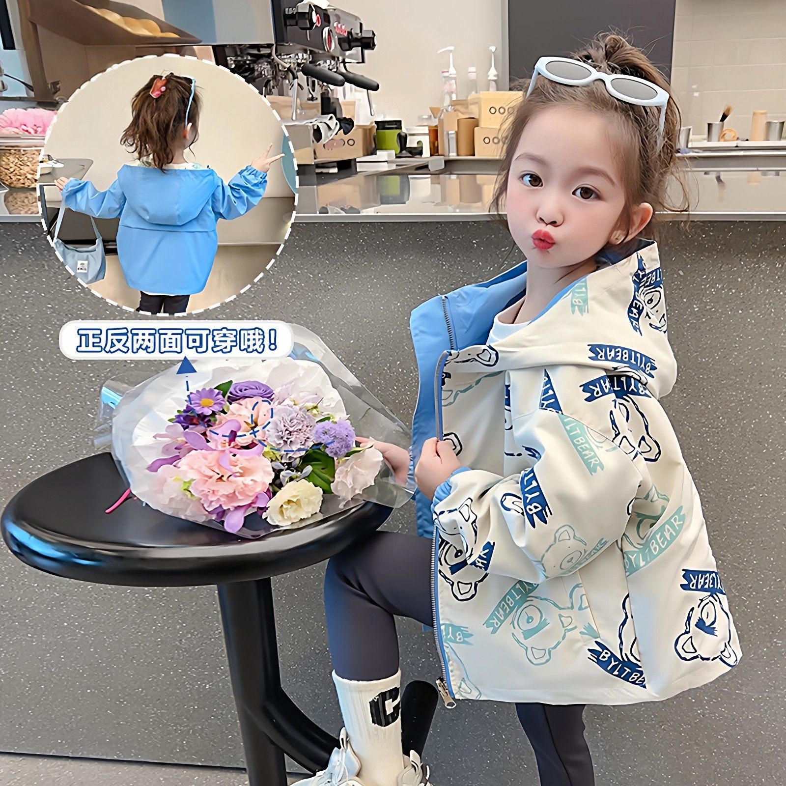 Next nien女童秋装冲锋衣2025新款两面穿衣服女宝宝春秋洋气外套