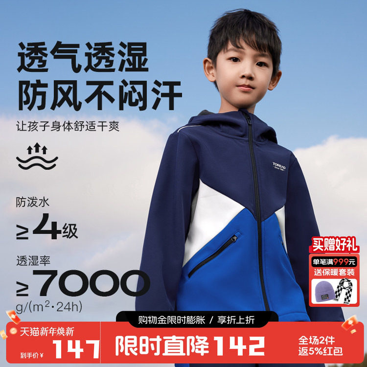 探路者童装软壳衣防泼水春秋男女童户外徒步防风透气儿童冲锋外套