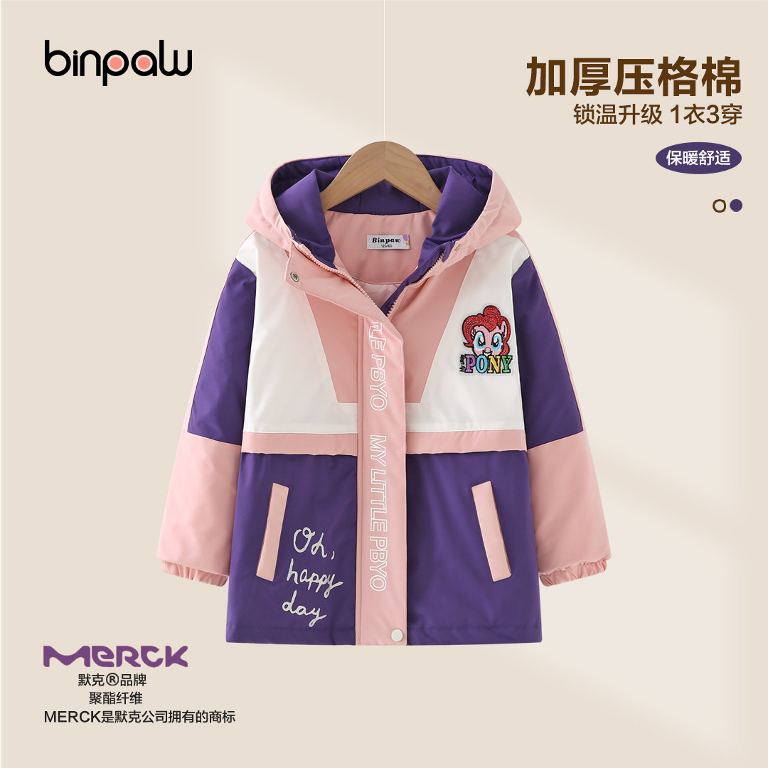 布丁哈鲁童装冬装女童户外上衣2025秋冬新款儿童三防加厚冲锋外套