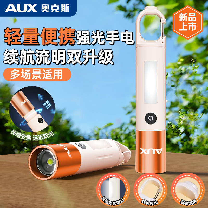 奥克斯强光充电手电筒小型便携超亮长续航学生家用宿舍看书不伤眼
