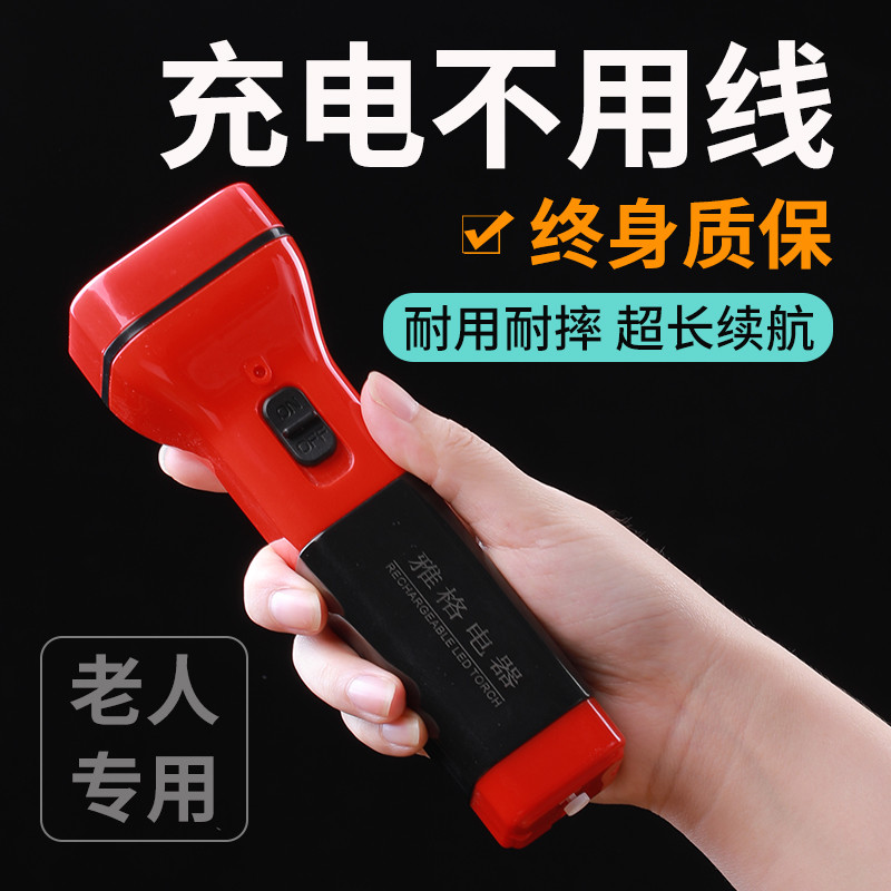 老年人专用直插充电手电筒无线快充强光爆高亮家用照明户外应急灯