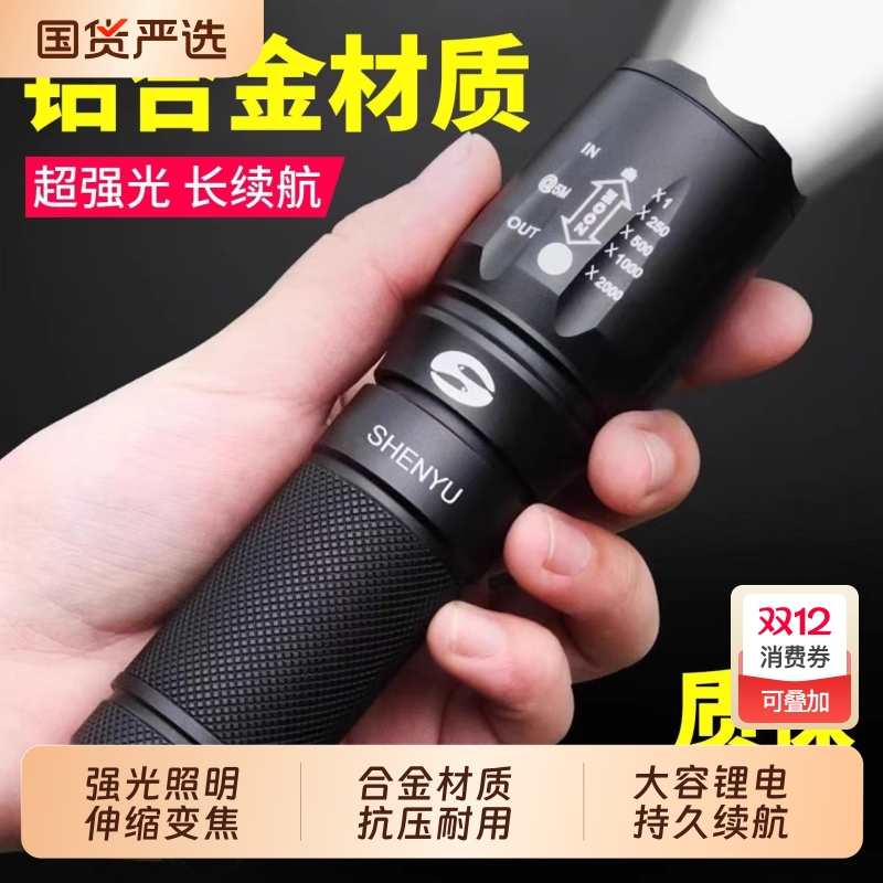 超亮远射400米铝合金LED强光充电手电筒大容量18650电池户外家用