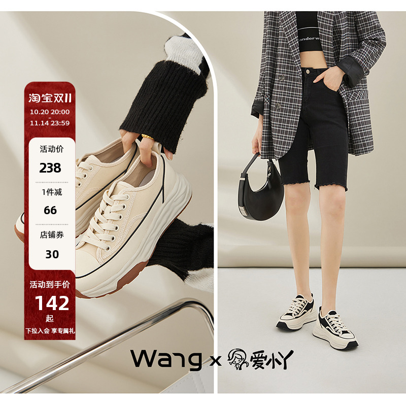 爱小丫联名【王小毒】北海道●4.3厚底增高帆布鞋女溶解底小白鞋