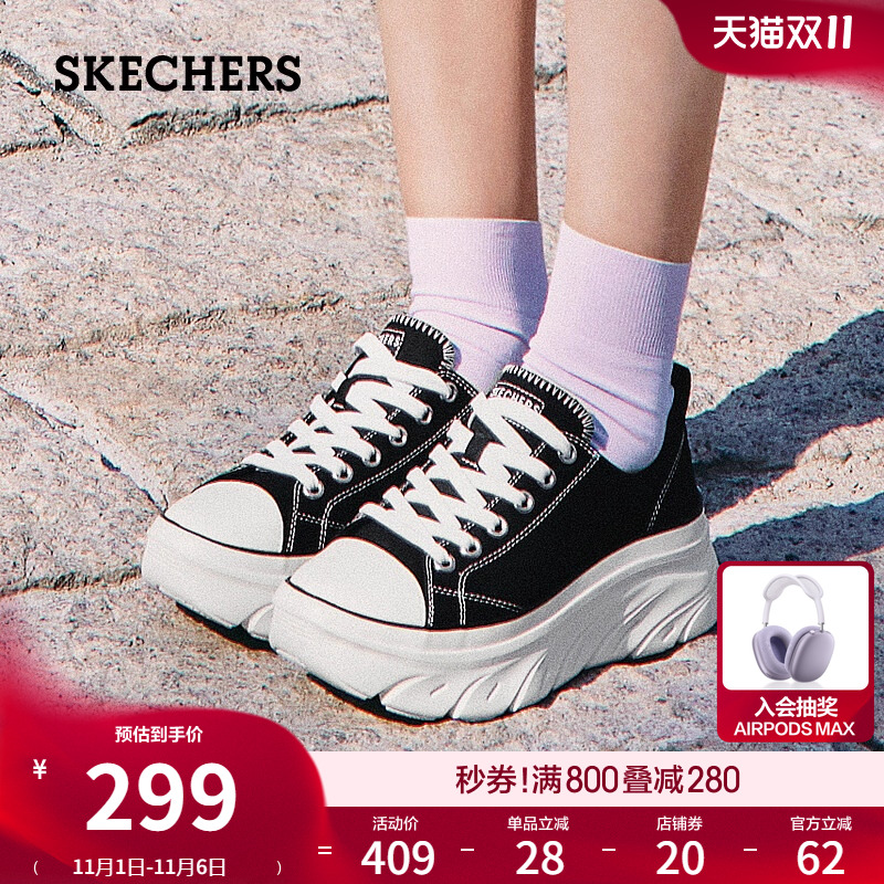 Skechers斯凯奇秋冬女鞋经典百搭帆布鞋厚底增高休闲鞋软底轻便