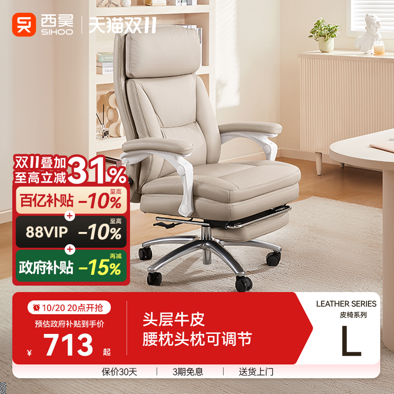 西昊L6真皮老板椅舒适人体工学椅可躺电脑椅家用办公书房沙发椅子