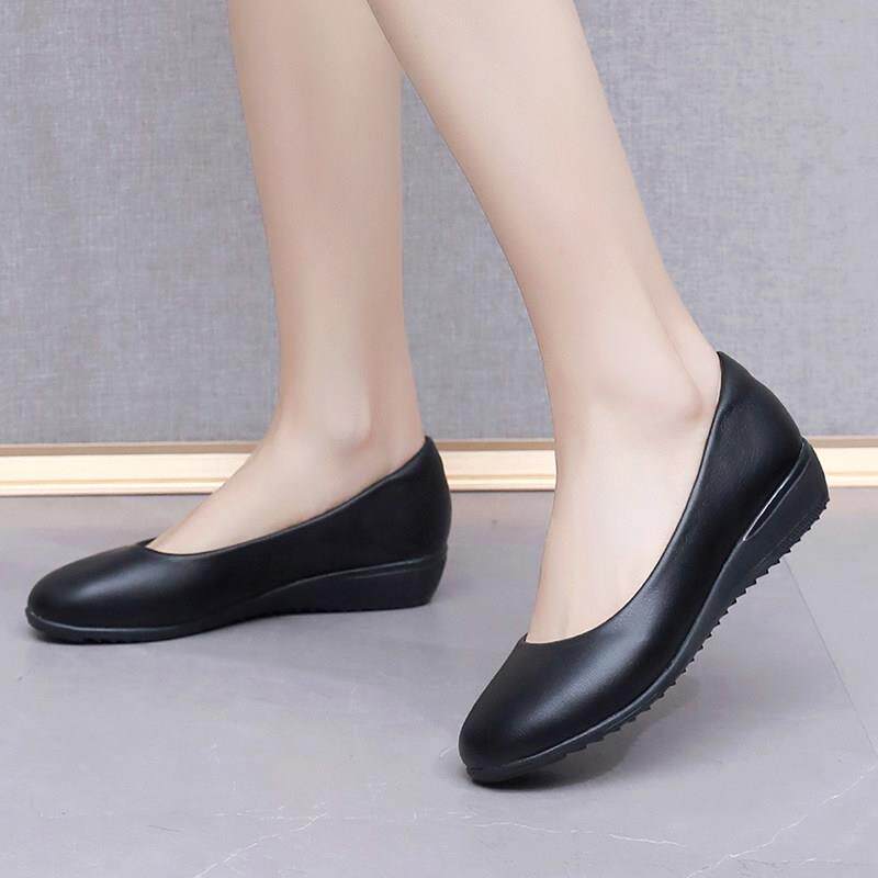 空姐久站不累工作鞋黑色平底职业鞋皮鞋大码妈妈鞋单鞋软皮上班鞋