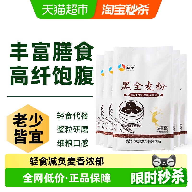 新良黑全麦粉1kg全麦面粉含麦麸黑金黑麦粉中筋面粉家用小麦粉2斤