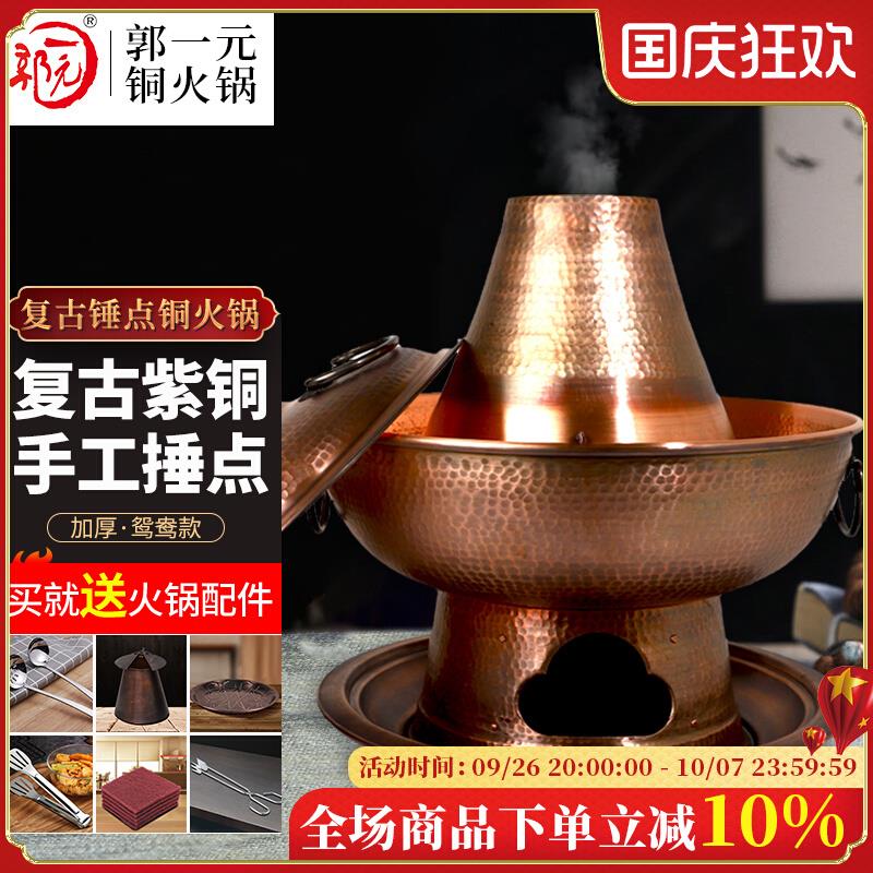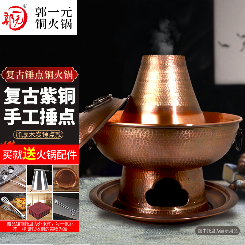 铜火锅木炭紫铜家用涮羊肉老式鸳鸯火锅商用碳电老北京火锅炉户外