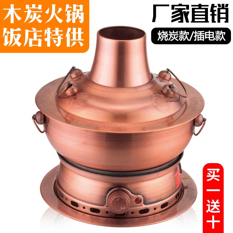 老北京铜火锅家用彷铜老式紫铜火锅木炭火锅炉商用涮羊肉电碳两用