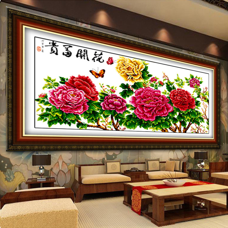 电脑机绣十字绣成品绣好的牡丹花开富贵出售大幅客厅图案简约现代