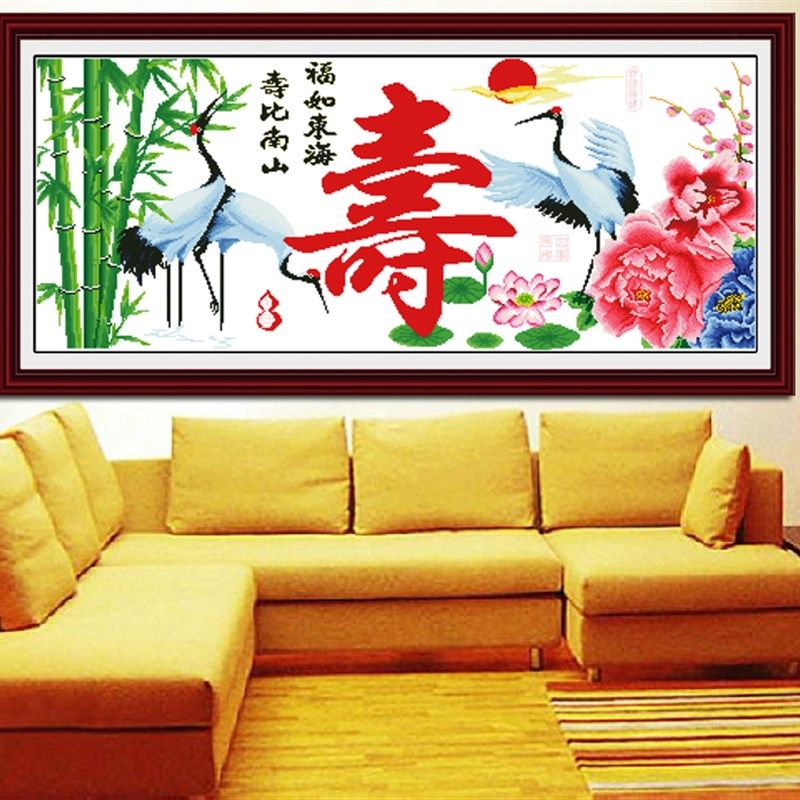 纯手工十字绣寿比南山仙鹤版益寿延年机绣十字绣成品新款客厅贺寿