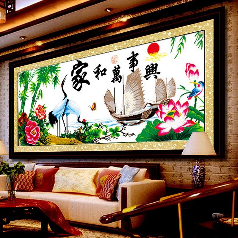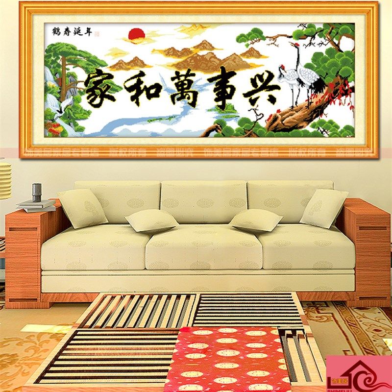2021新款线绣机绣十字绣成品家和万事兴已绣好的出售客厅棉线大气