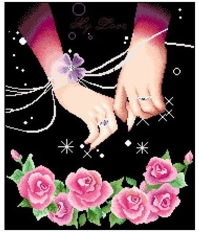 机绣十字绣成品一生的承诺玫瑰牵手黑布竖版结婚卧室电脑绣机器绣