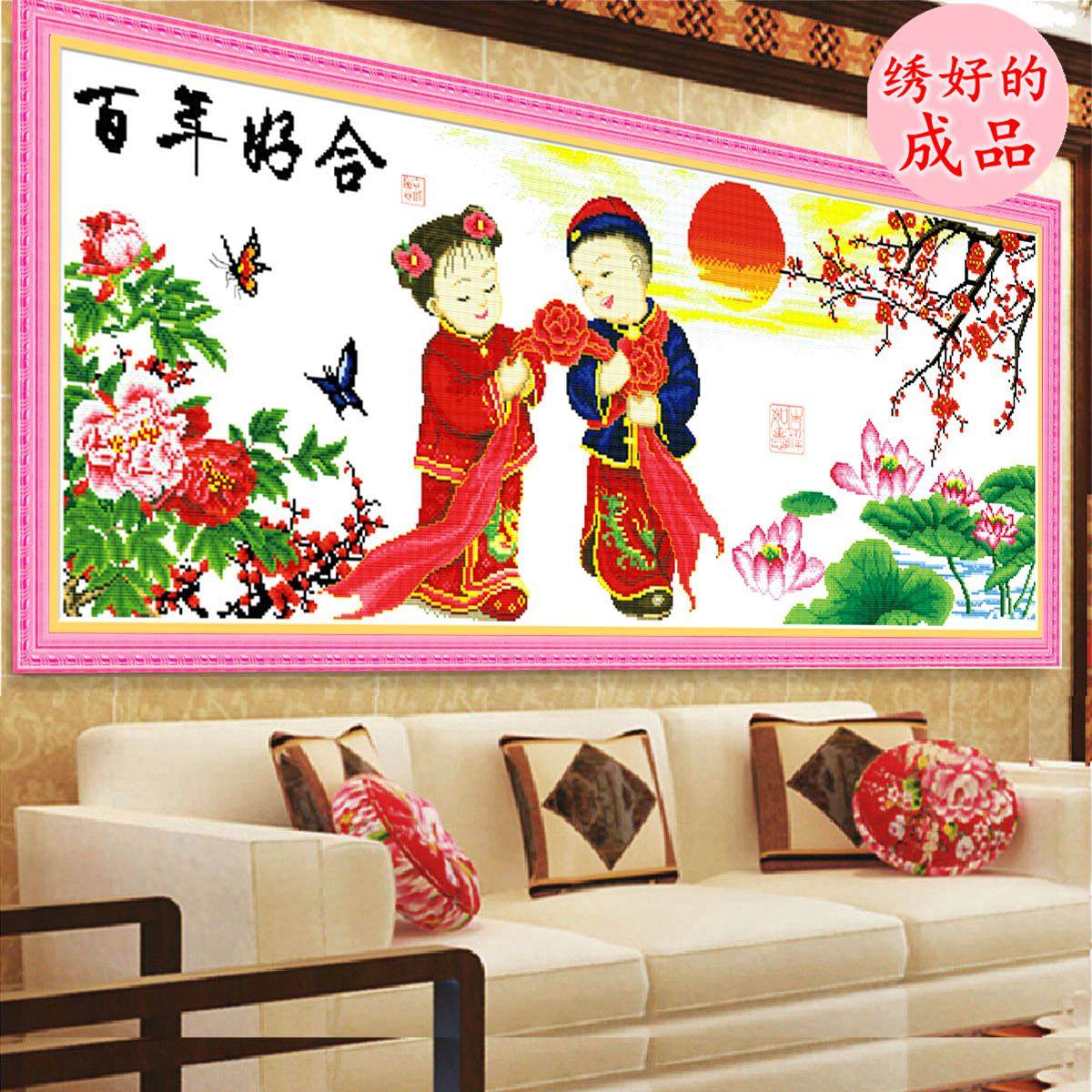 热销ay35电脑机绣十字绣成品新款结约定百年好合客厅装饰大画幸福