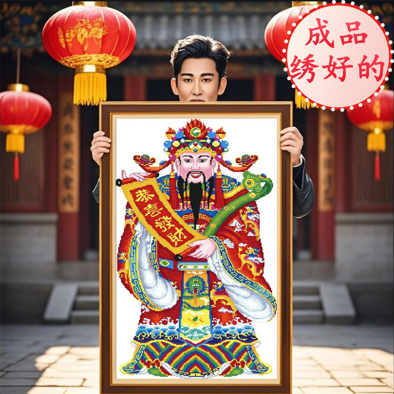 成品财神爷已绣好的2025新款电脑机绣十字绣纯手工出售客厅玄关画