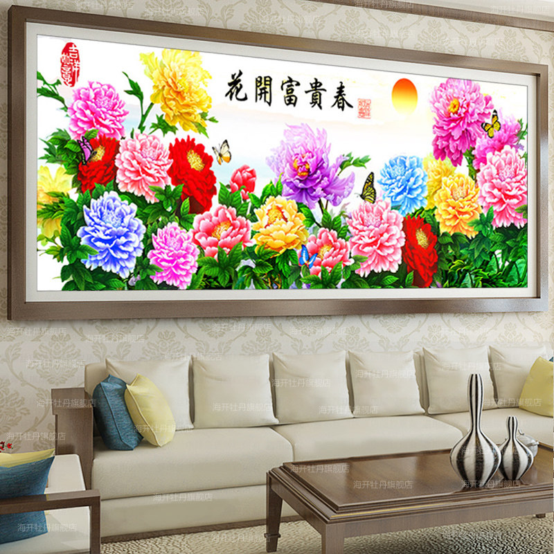 绣好的十字绣花开富贵春六尺国色牡丹机绣十字绣成品大幅2米牡丹