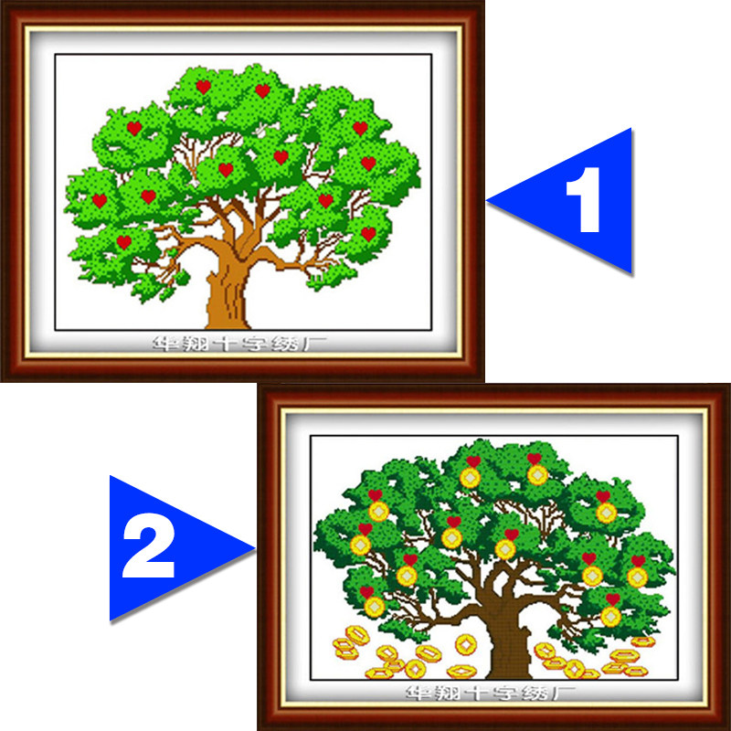 绣好的发财树招财树摇钱树富贵树机绣十字绣成品客厅小幅装饰挂画