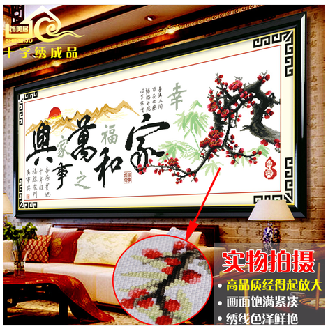 机绣十字绣成品家和万事兴幸福之家1.8米红梅花电脑绣画家用客厅