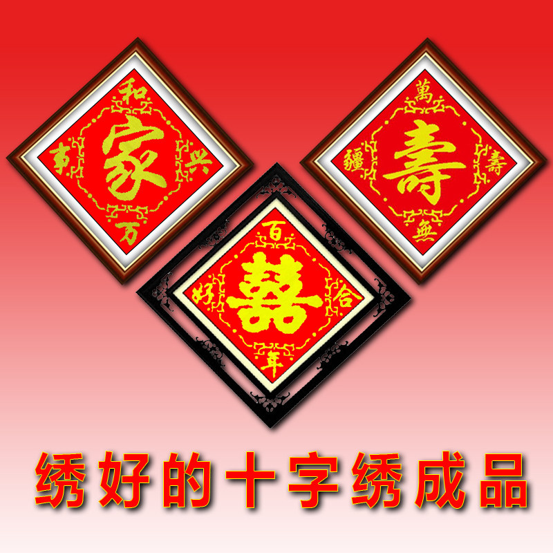 喜字电脑机绣十字绣成品家字绣好的寿字结婚祝寿送礼小幅装饰挂画