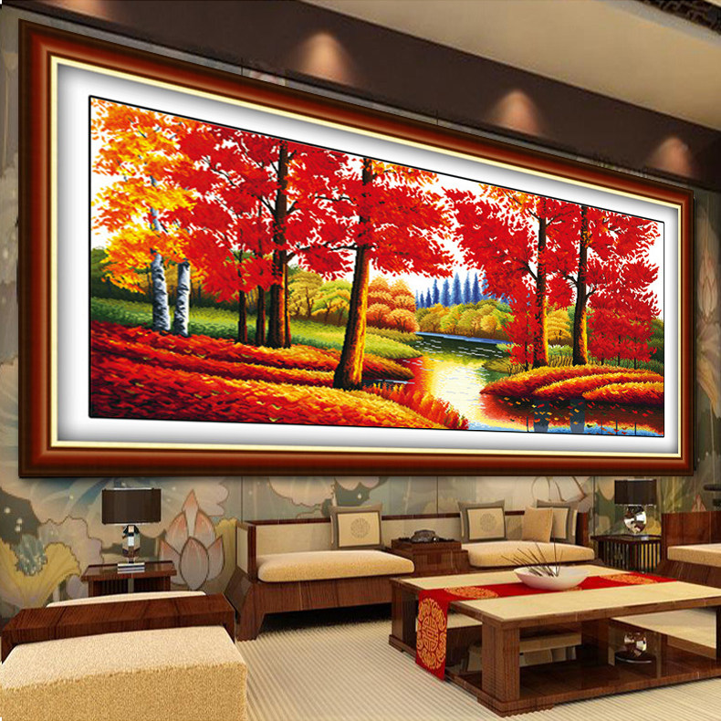 金玉满堂红机绣十字绣成品枫叶林绣好的手工风景简约欧式装饰挂画