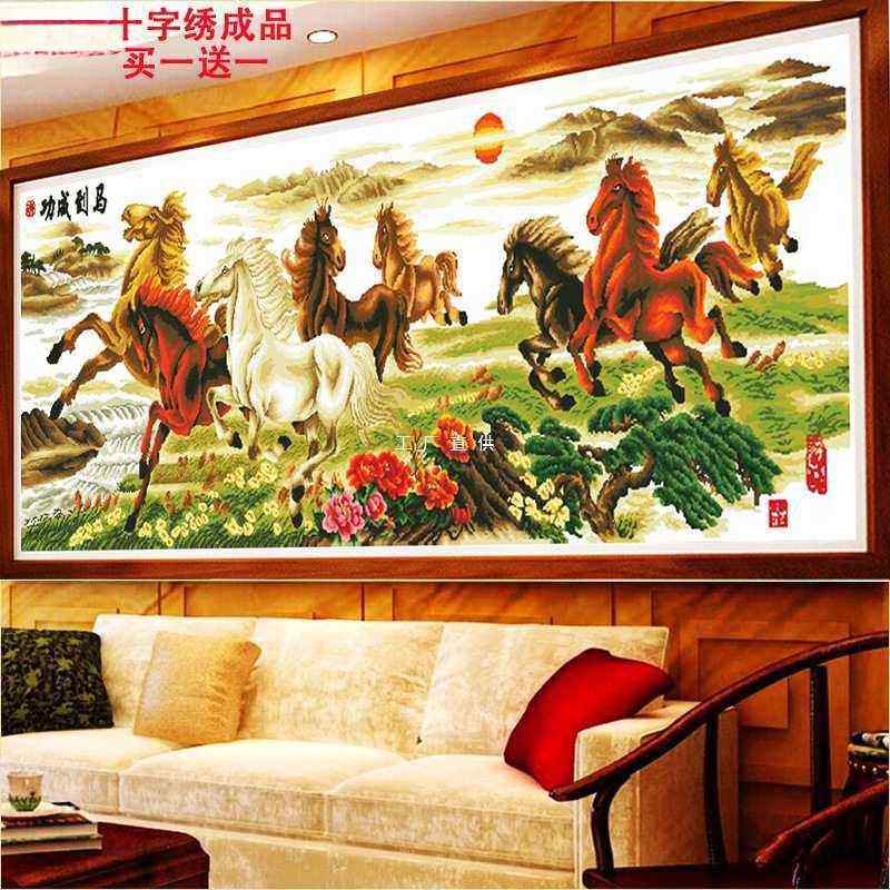 成品已绣好的马到成功2022新款机绣十字绣纯手工出售客厅八骏图
