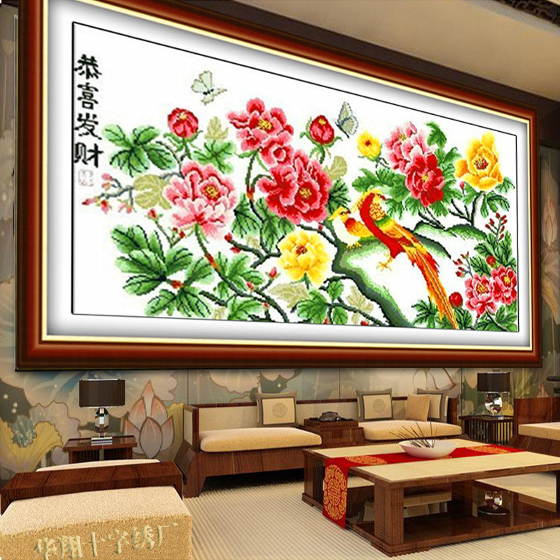 优选宏辉电脑机绣十字绣成品新款包邮家和万事兴春光明媚客厅大画