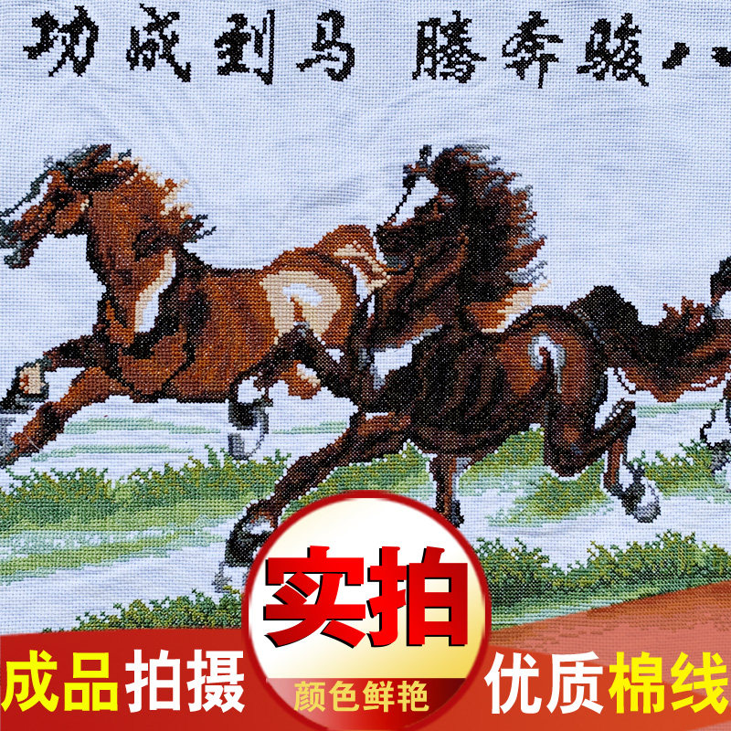 直销新款70YF电脑机绣十字绣成品已绣好马到成功八骏图棉布客厅现