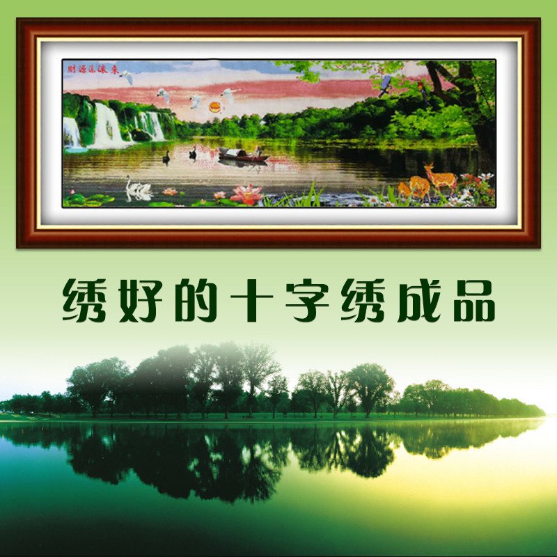 绣好的财源滚滚来流水生财红运当头机绣十字绣成品手工客厅山水画