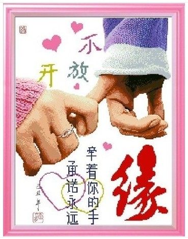电脑刺绣机绣十字绣成品牵手缘一辈子情侣竖版卧室婚礼结婚房间画