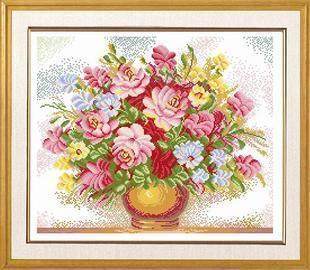 机绣十字绣成品粉红玫瑰粉玫瑰粉色玫瑰花瓶花卉电脑刺绣画sz餐厅