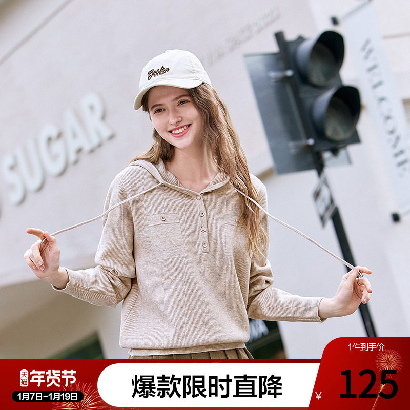 betu百图法式软糯连帽针织衫女套头2025年秋季新款宽松外穿毛衣