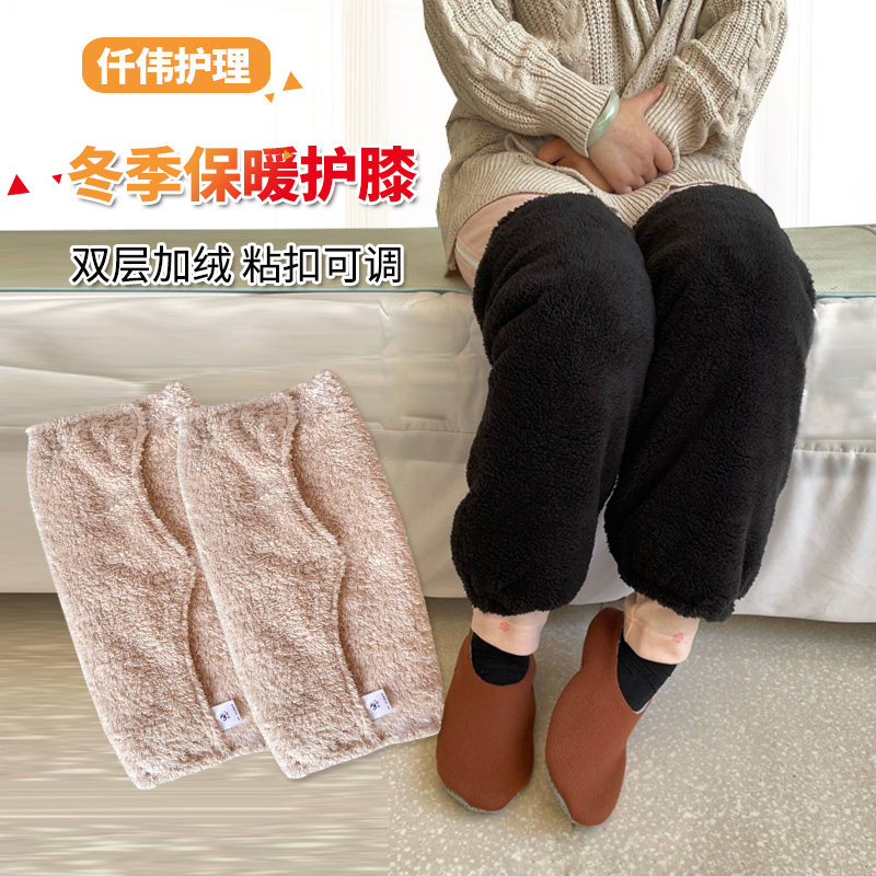 老人护膝双层加厚粘贴式方便穿脱卧床病人月子膝关节防寒保暖护腿