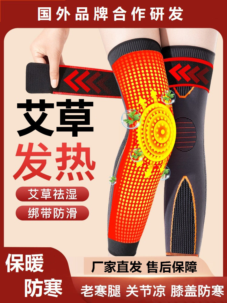 艾草护膝盖保暖老寒腿男女士关节发热老人护腿长筒套加厚防寒专用