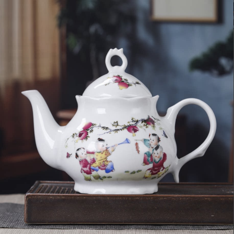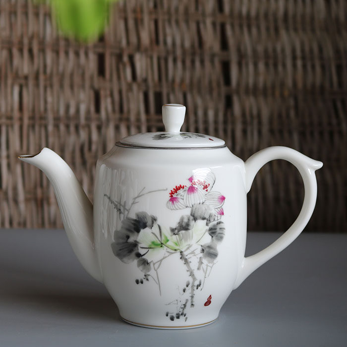大茶壶陶瓷单壶茶具大号大码家用白色加厚泡毛尖春茶釉下彩景德镇