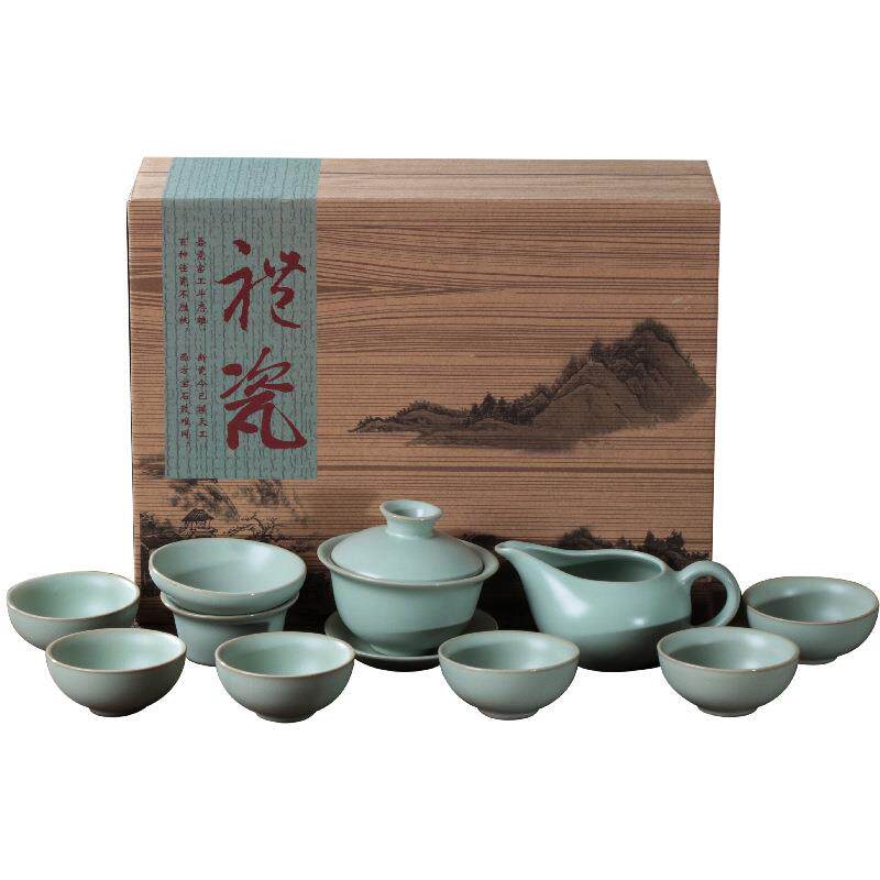汝窑陶瓷功XL-370夫具茶杯茶壶盖碗整套套节实庆茶礼品用地推装商