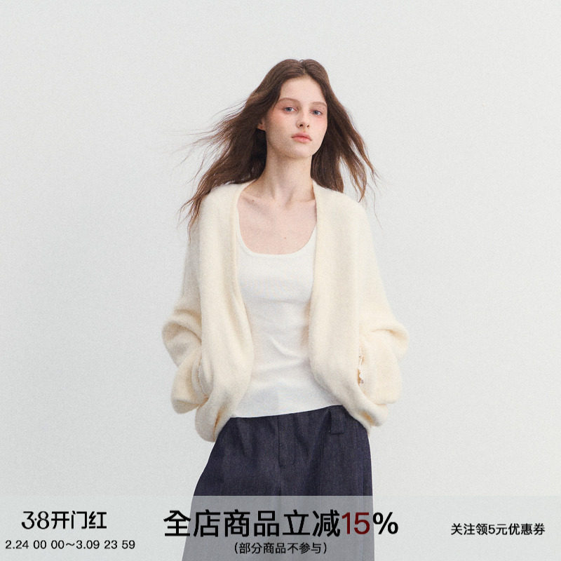 pusumede 慵懒定格 设计感蝙蝠袖针织开衫女马海毛软糯宽松外套