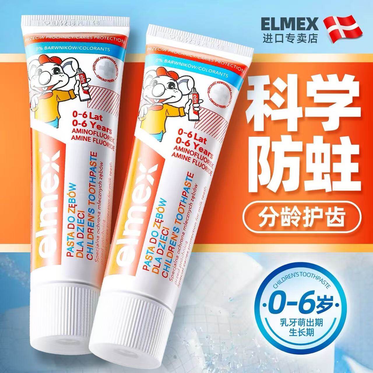 elmex婴幼儿童宝宝牙膏艾美适1岁2岁3含氟0-6岁以上护齿防蛀elmax