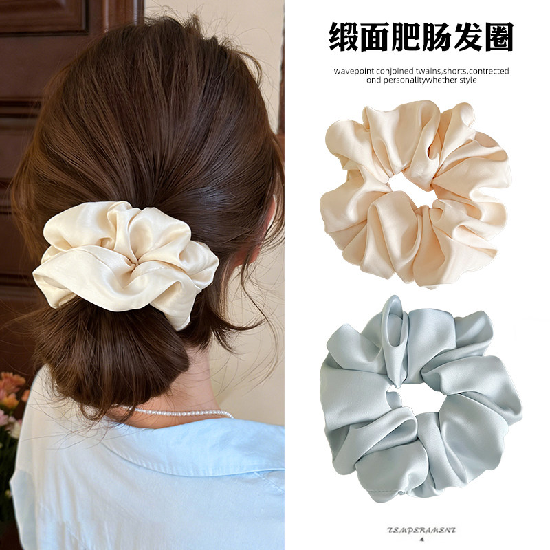韩系高级感缎面大肠发圈女气质低丸子头发饰慵懒风绑头发皮筋发绳