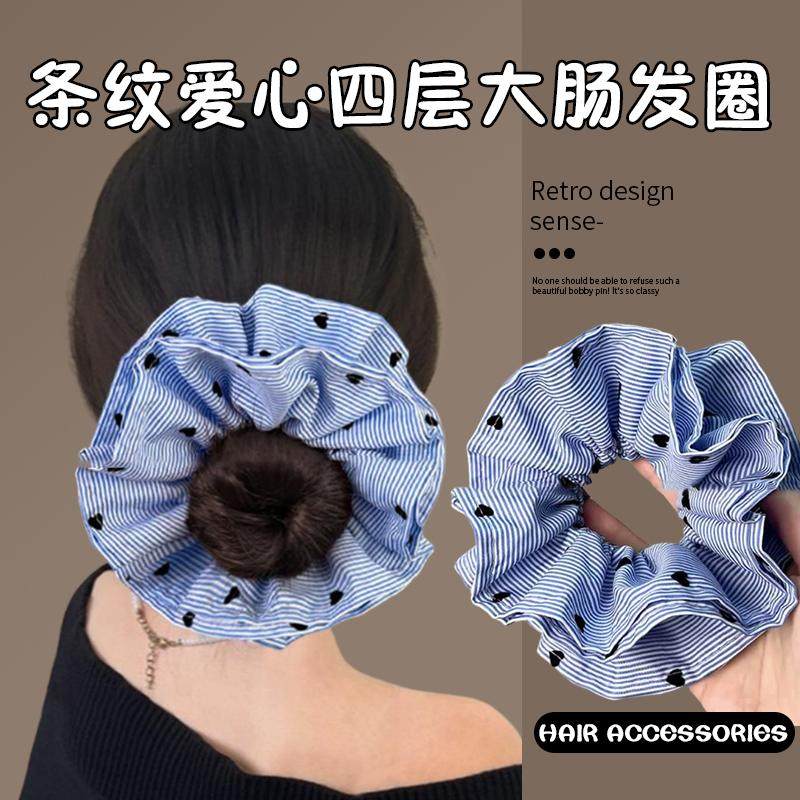 suzyacc kr法式花朵褶皱发圈女条纹大肠圈小众设计百搭绑头发皮筋