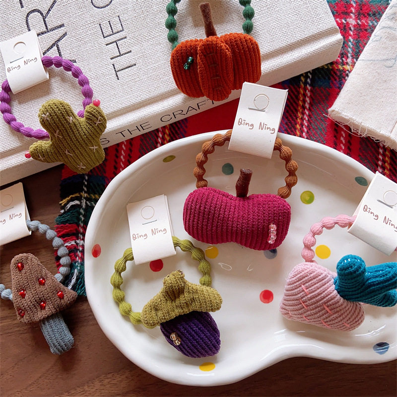 韩国可爱儿童发绳大号布艺深色蘑菇发圈女童可爱亲子款绑头发皮筋