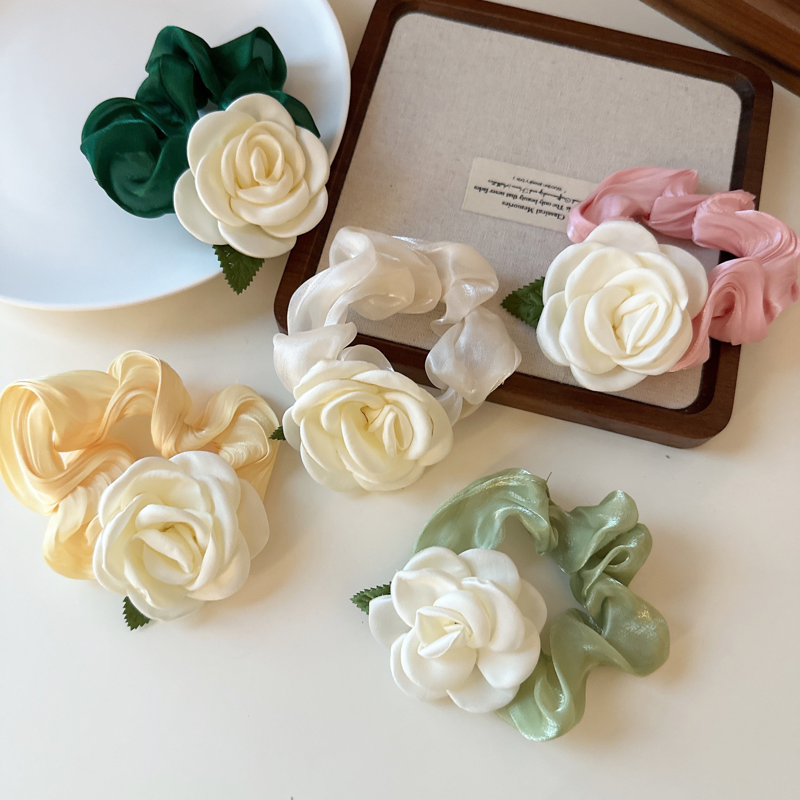 超仙森系奶白玫瑰花大肠发圈山茶花头绳扎绑头发皮筋简约法式发绳