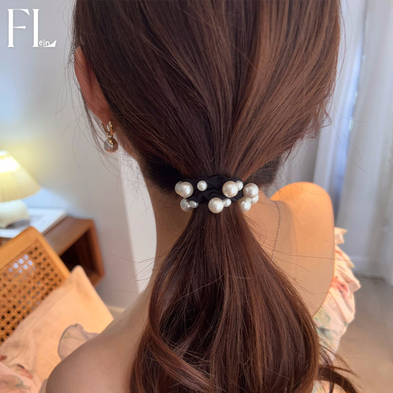 简约高级感珍珠发圈女韩系气质黑色扎马尾头绳绑头发皮筋面膜发绳