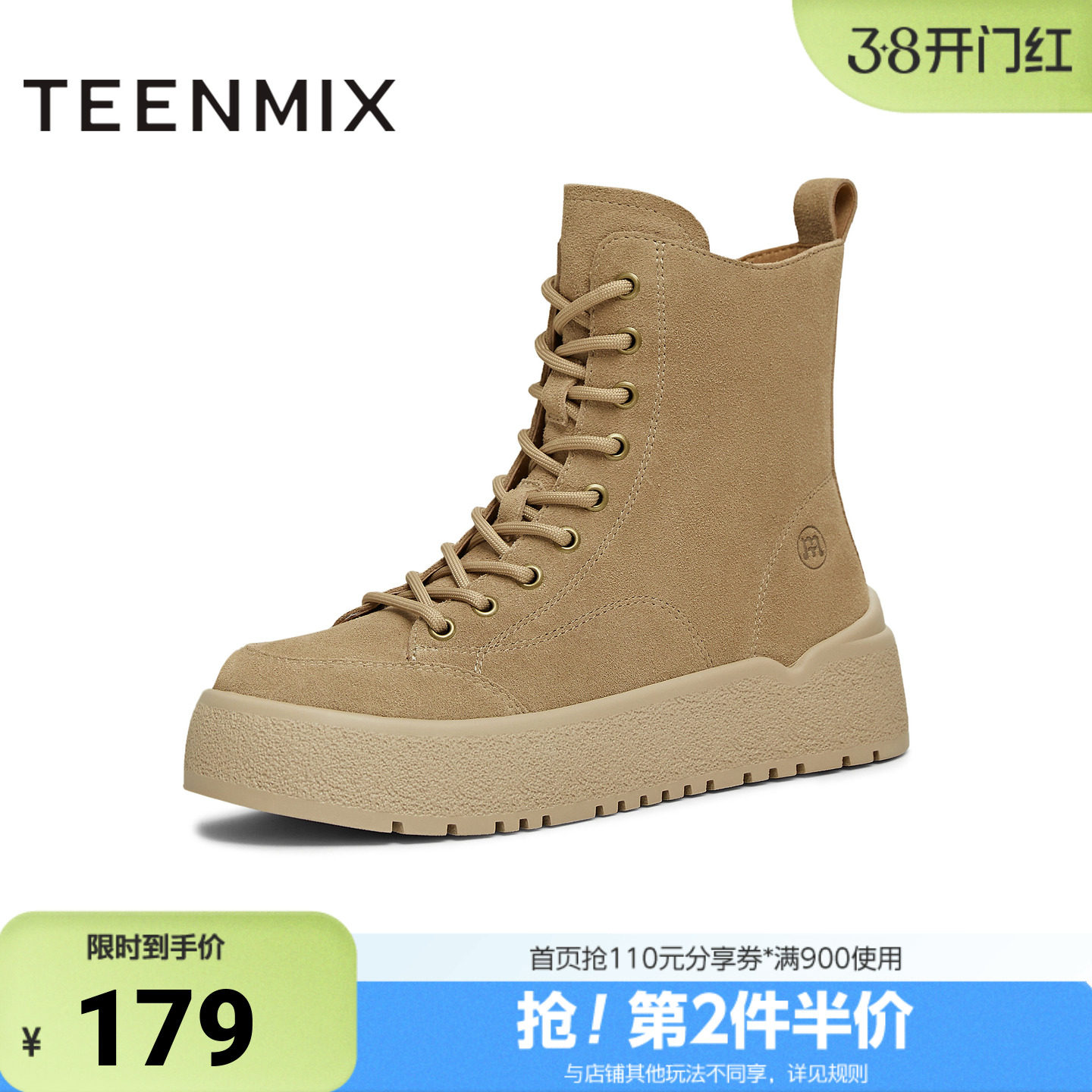 天美意2025冬新款商场同款系带短靴户外潮流女马丁靴CCR40DD5