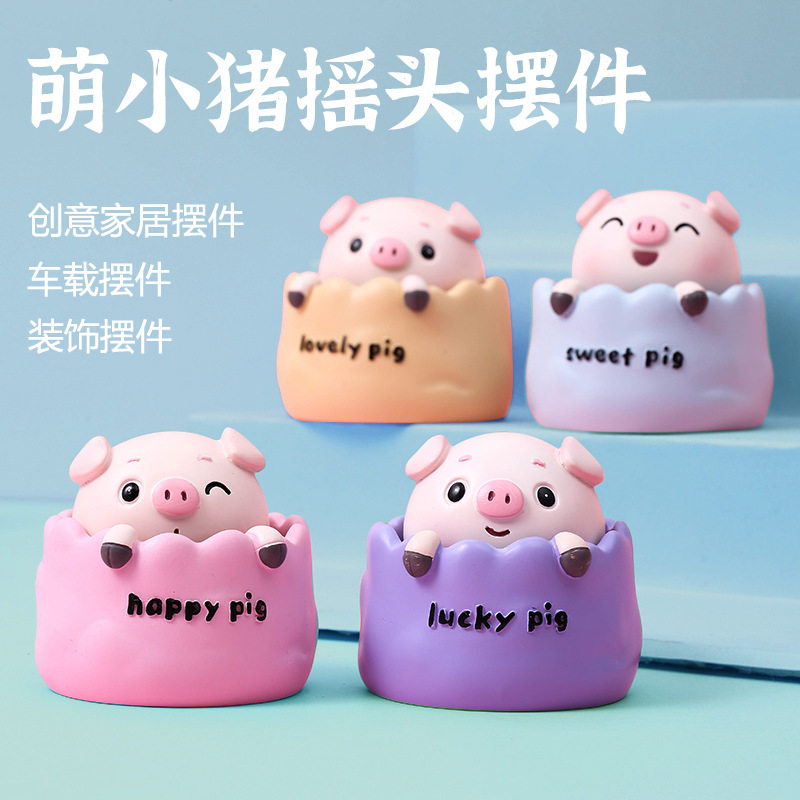 萌小猪摇头树脂摆件创意家居车摆工艺品招财猪摆件装饰萌粒公仔猪