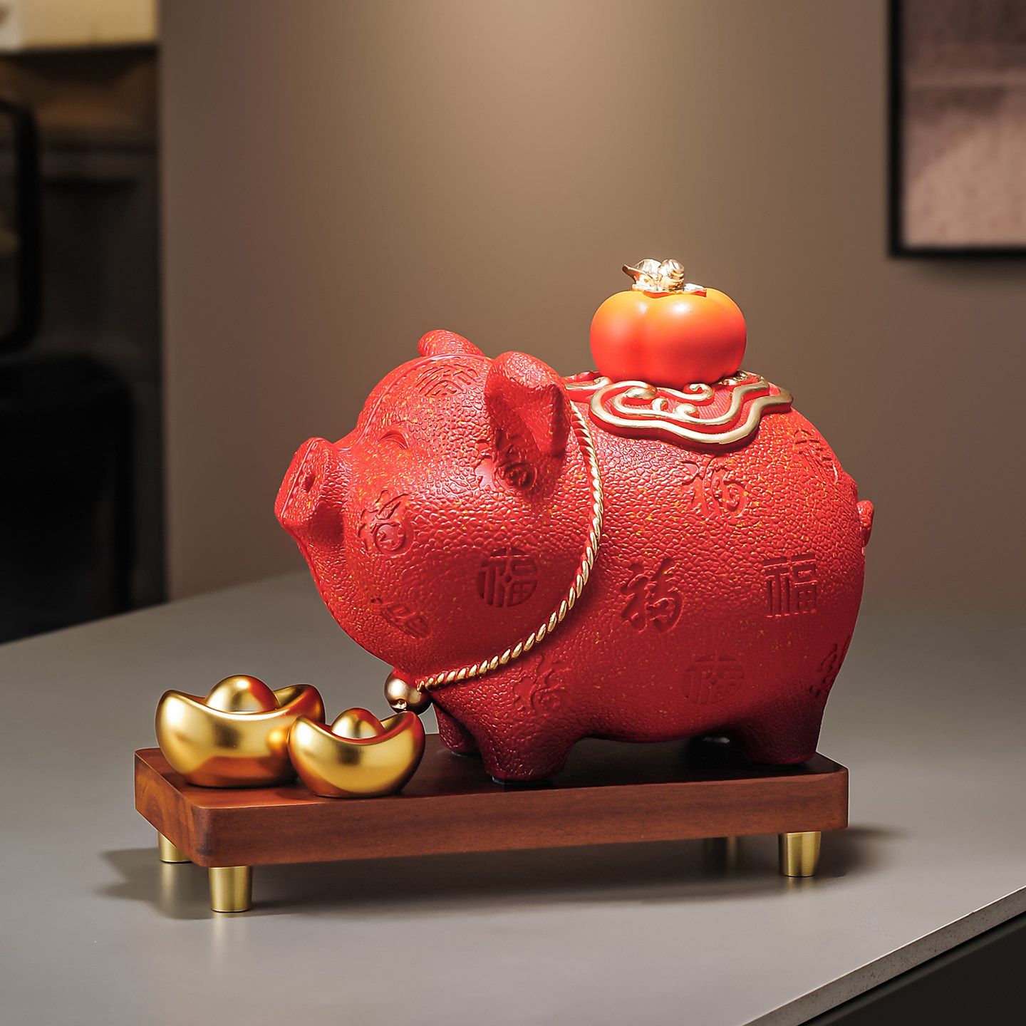 红色招财猪摆件树脂动物造型客厅办公室装饰品桌面工艺品新年礼品