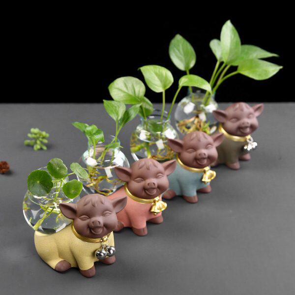 简约家居中式陶瓷水养花瓶客厅装饰品干花插花水培花器招财猪摆件