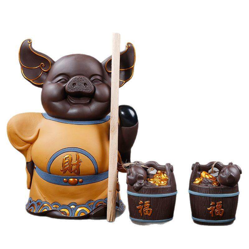 中式禅意紫砂大号招财猪摆件家居客厅博古架装饰品陶瓷工艺品摆设